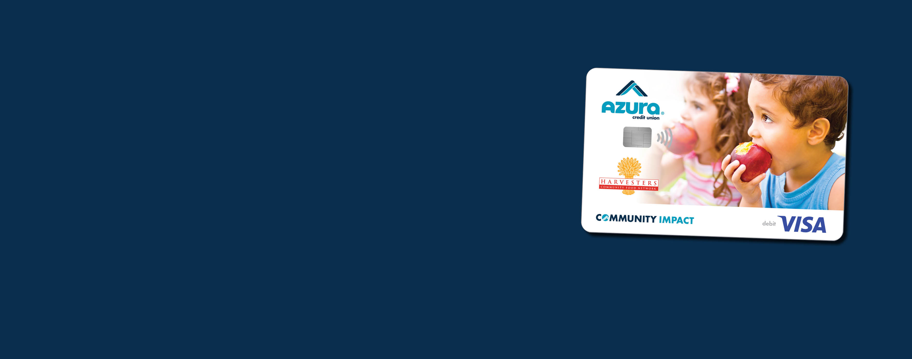 Every purchase you make with a Harvesters Community Impact Visa® Debit Card helps support the fight to end hunger— at no cost to you. Azura donates five cents per transaction, turning everyday spending into meaningful support for local schools and programs that strengthen our community.
