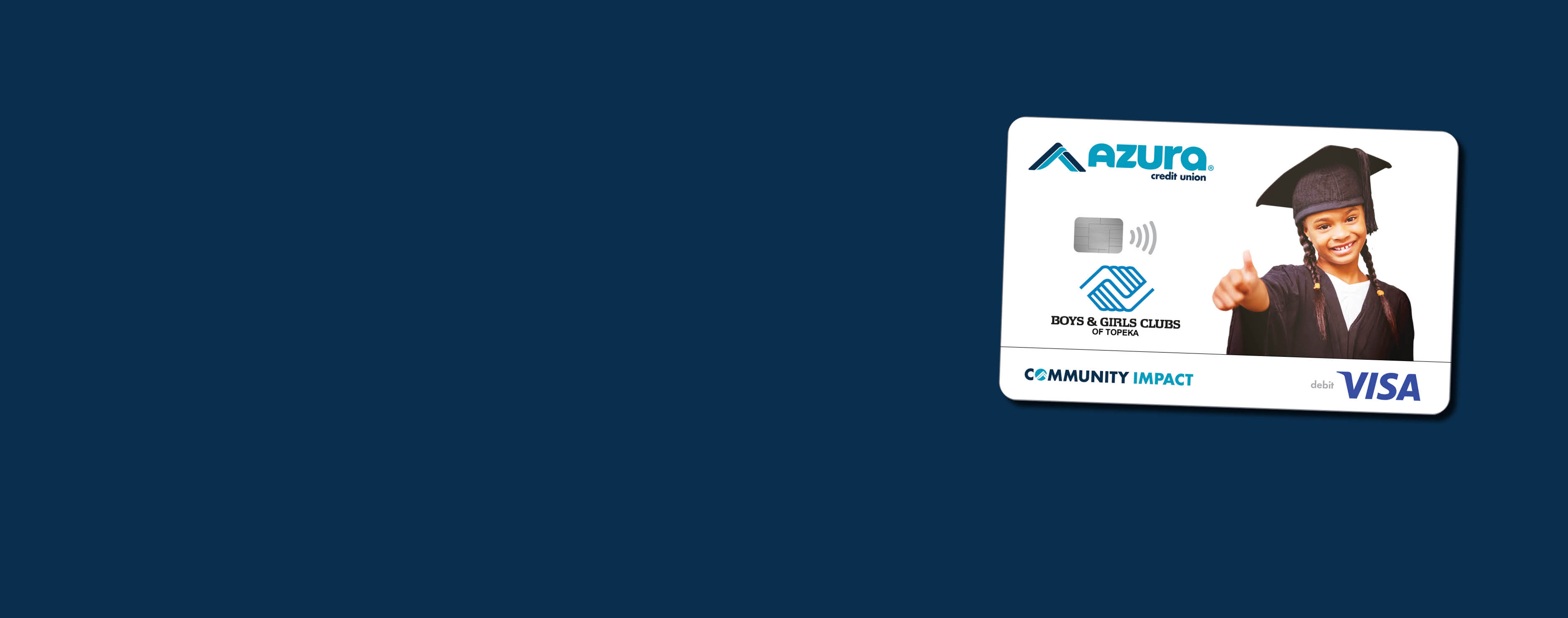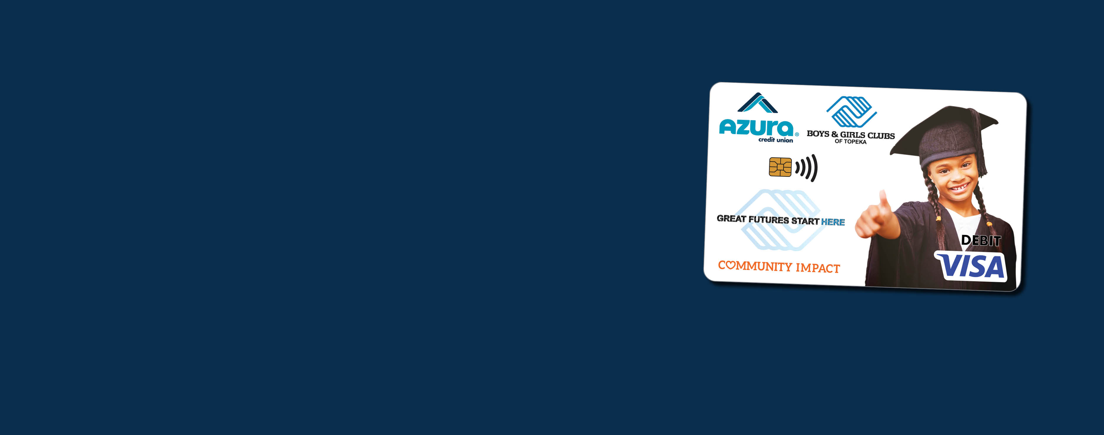 Every purchase you make with a Boys & Girls Clubs of Topeka Community Impact Visa® Debit Card helps support local youth development — at no cost to you. Azura donates five cents per transaction, turning everyday spending into meaningful support for local programs and schools that strengthen our community.